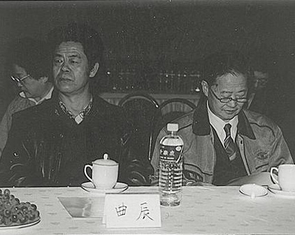 | 曲辰与著名古建筑学家罗哲文先生在钓鱼台国宾馆 | 曲辰与著名考古学家、博士生导师郑光讨论历史问题 |