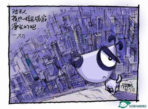 七刀的私人情愫: 只缘感君一回顾, 使我思君朝与暮。 R 6ca; R 6ca; R 6ca; 刀刀是一只忧郁的小狗,敏感而善良,它对未来充满渴望,但却有着这样那样的不安全感。它是真实的,对于这个世界它永远存在每个人的心里。因为它有所有善良的特征,同样有着所有胆小和少许懦弱天性。它会坚强如果生活需要一个强者,和我们一样刀刀也会寂寞,面对寂寞一样的弱小无助。想要与众不同,但却无法放下生活的负累。徘徊在梦想与现实的边缘,用妥协来平衡与调节。