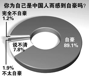 |t6 :4'] “比垮更垮的一代”是目前部分人群对“90后”的看法,然而上海青少年发展状况观察报告结果却显示,上海青少年并不是“非主流”或“反主流”,相反,“90后”中大部分青少年具有国家意识,认同社会主流价值观――89.1%表示“我为自己是中国人而感到自豪”,也乐于为社会服务。