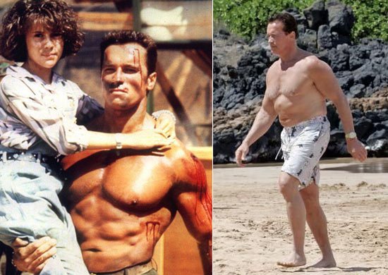 S)cLW~=z 请不要以为健美先生们年纪大了以后还能够保持住身材,不信请看施瓦辛格吧,自从不当明星了之后,他就放任自己的魔鬼身材往横向发展,从前的八块腹肌,一下子成为了八块肚腩,这倒是也让我们知道了一个事情:原来肌肉变赘肉之后,也还是会保留着一些些轮廓的哟。