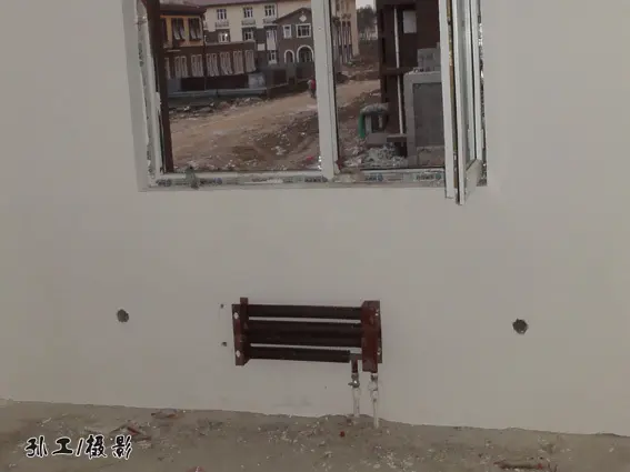 这暖气可够难看的哦~ 而且比较耗能,估计将来得有不少人更换。又是一浪费国家钱财的活,难道就不能一步到位弄点美观的暖气给业主,哪怕加点钱呢,也比扔掉旧暖气浪费强啊!大方居的业主有个先天优势那就是窗户是平开窗,这种窗户的保温性能比较好,那么对暖气的散热要求也就不那么严格了,可以为了美观或者省地方将暖气适当的调高悬挂高度。当然,一旦你动了暖气,哪怕是挪个地方,以后暖气再出现任何问题物业都将不再负责任,你的暖气风险将转到给你换新暖气或改暖气的公司身上,所以如果挪或换暖气一定要找有风险承担能力的单位。
